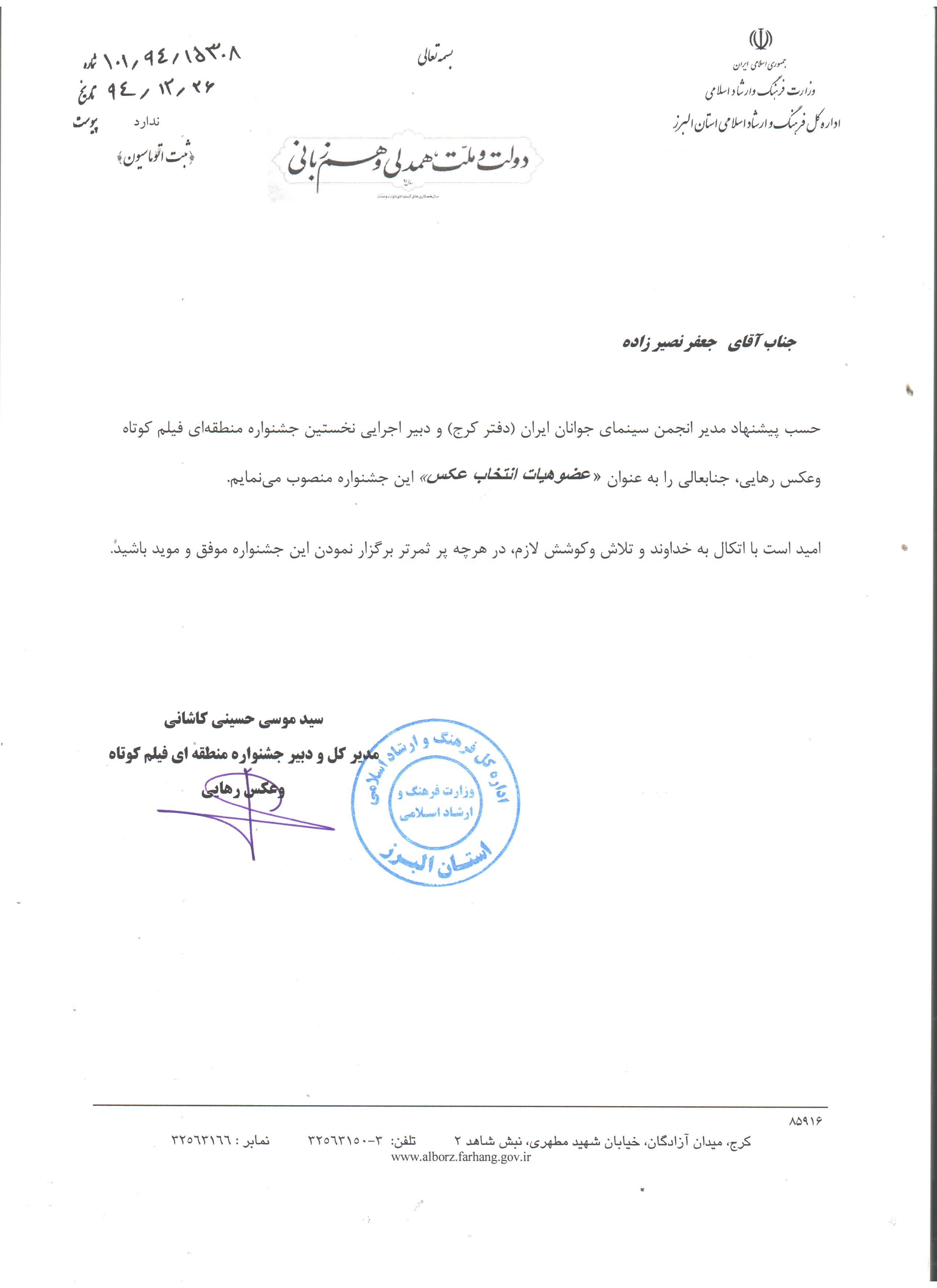 _ 1395 داور اولین دوره جشنواره عکس رهایی وزارت ارشاد استان البرز [تصویر 1] [تصویر 2]