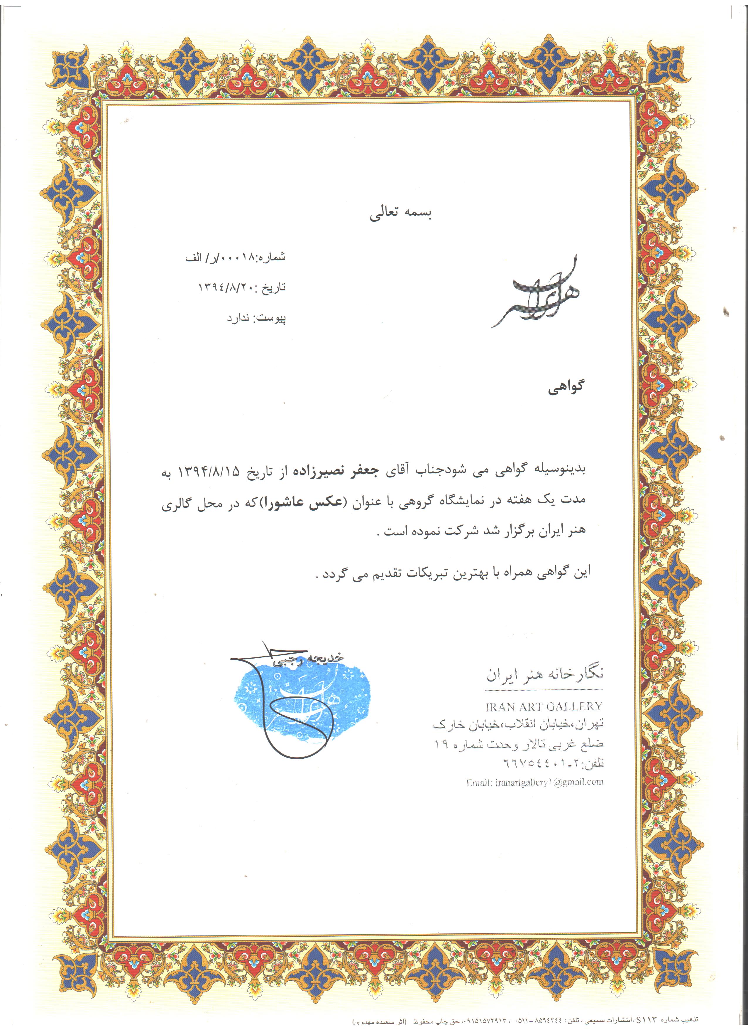 _ حضور در چند نمایشگاه جمعی عکس آزاد و عاشورا در استان تهران 1394 و 1392 [تصویر 1] [تصویر 2]